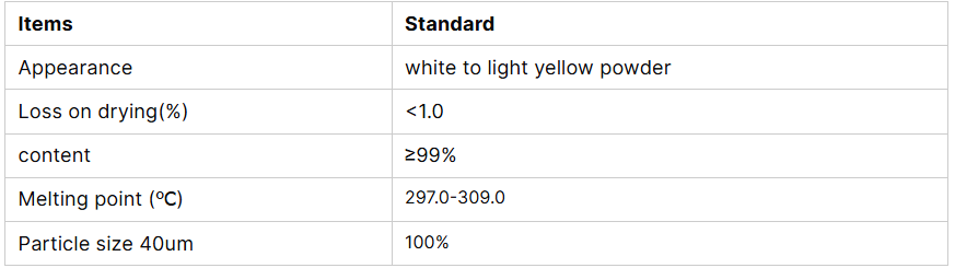 Substancja jest białą, krystaliczną substancją stałą, rozpuszczalną w wodzie i niektórych rozpuszczalnikach organicznych. Ma stosunkowo wysoką stabilność termiczną i chemiczną.